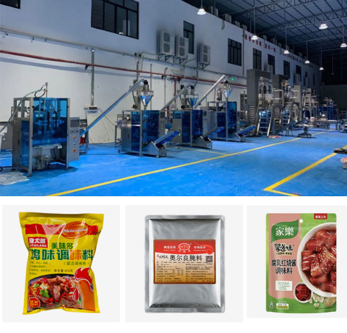 全自動複合調味料包裝機-粉劑調料包裝機應用現場及包裝樣品